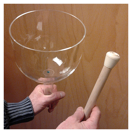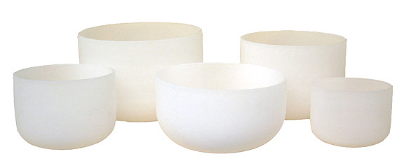 The quartz crystal singing bowls that we offer at Gandharva Loka in Christchurch are sourced from America and are made of the highest quality materials. They range in size from 20 cm (8") to 50 cm (20") in diametre and are tuned to a variety of tones that correspond with the seven main chakras or spiritual energy centres. (These are Sahasrara: the crown chakra; Ajna: the brow chakra or 'Third Eye'; Vishuddha: the throat chakra; Anahata: the heart chakra; Manipura: the solar plexus chakra; Swadhisthana: the sacral chakra and Muladhara: the root chakra.)