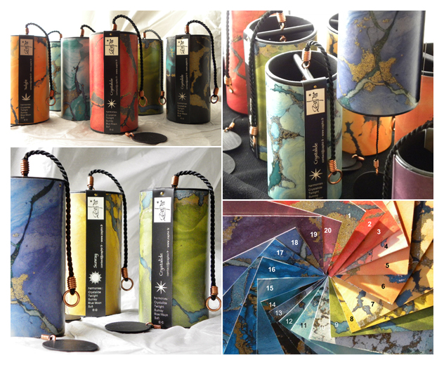 The five different tunings (hear sound samples below) and specific timbres of the Zaphir, combined with their wide variety of colorful designs, bring a lovely element of peace and relaxation to your surroundings and this also makes them excellent gifts. Zaphir chimes and their close relative, the Koshi chimes, are also very effective for use in sound therapy work for relaxation, well-being and healing. A video clip displaying the various colour designs and sounds of Zaphir chimes can be viewed here.